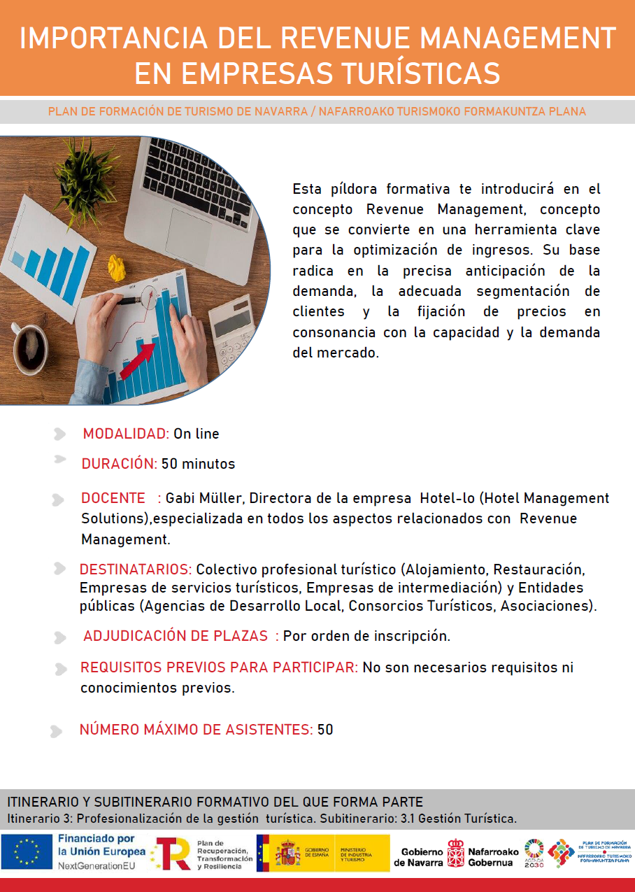 DESTINATARIOS: Titulares de actividades de alojamiento (Casas rurales, Apartamentos y Viviendas turísticas, Establecimientos hoteleros, Albergues, Campings) inscritas en el Registro de Turismo de Navarra.