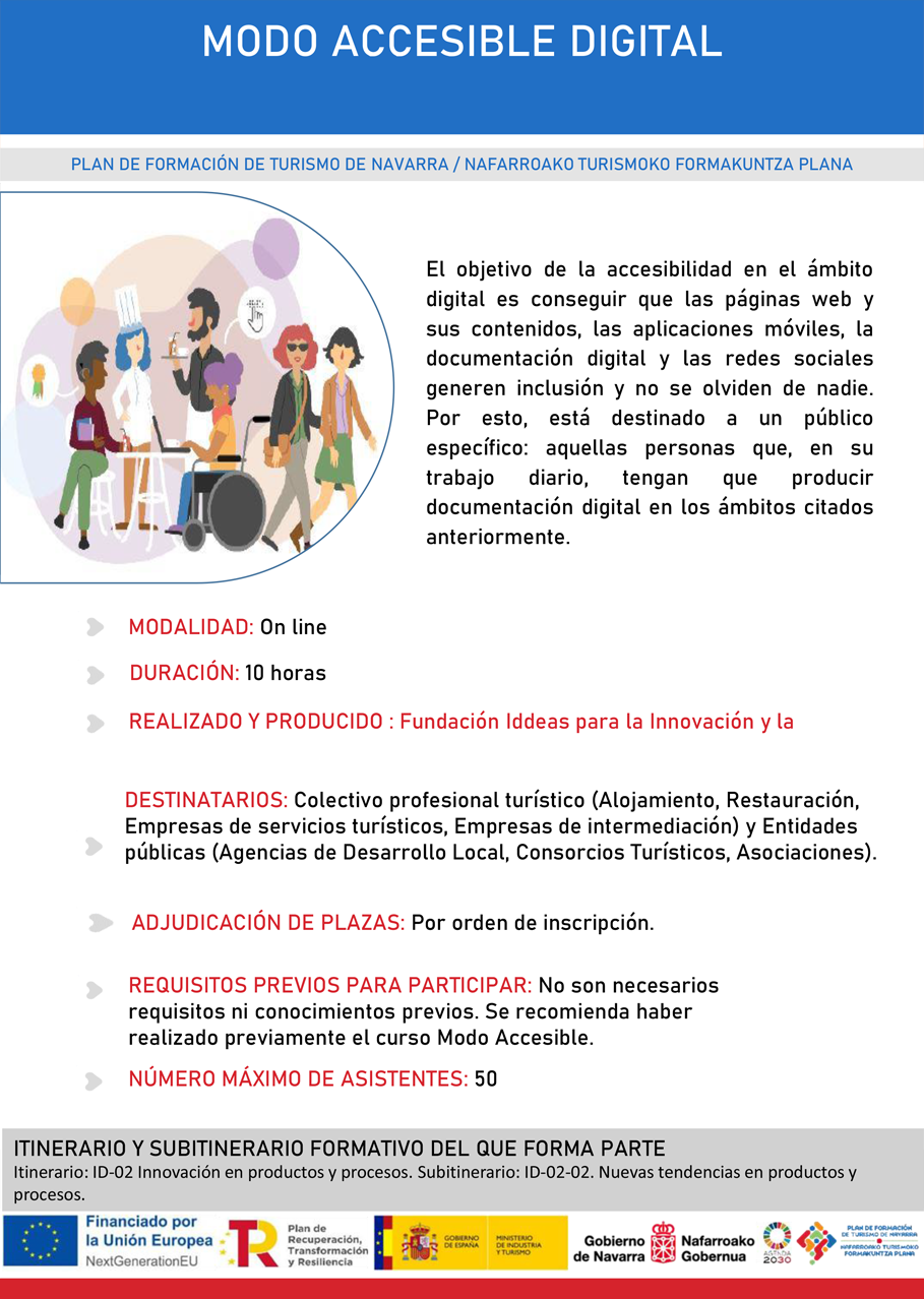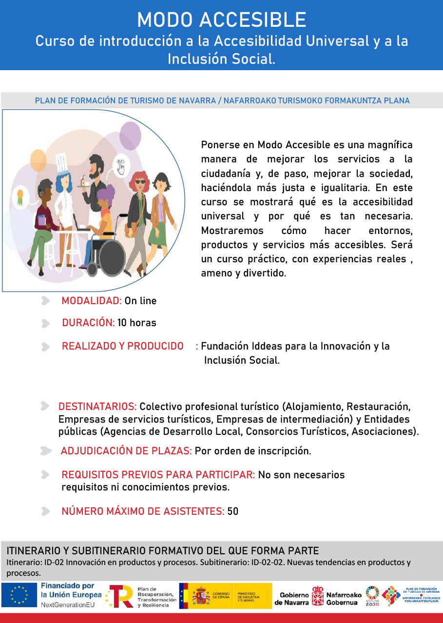 DESTINATARIOS: Titulares de actividades de alojamiento (Casas rurales, Apartamentos y Viviendas turísticas, Establecimientos hoteleros, Albergues, Campings) inscritas en el Registro de Turismo de Navarra.